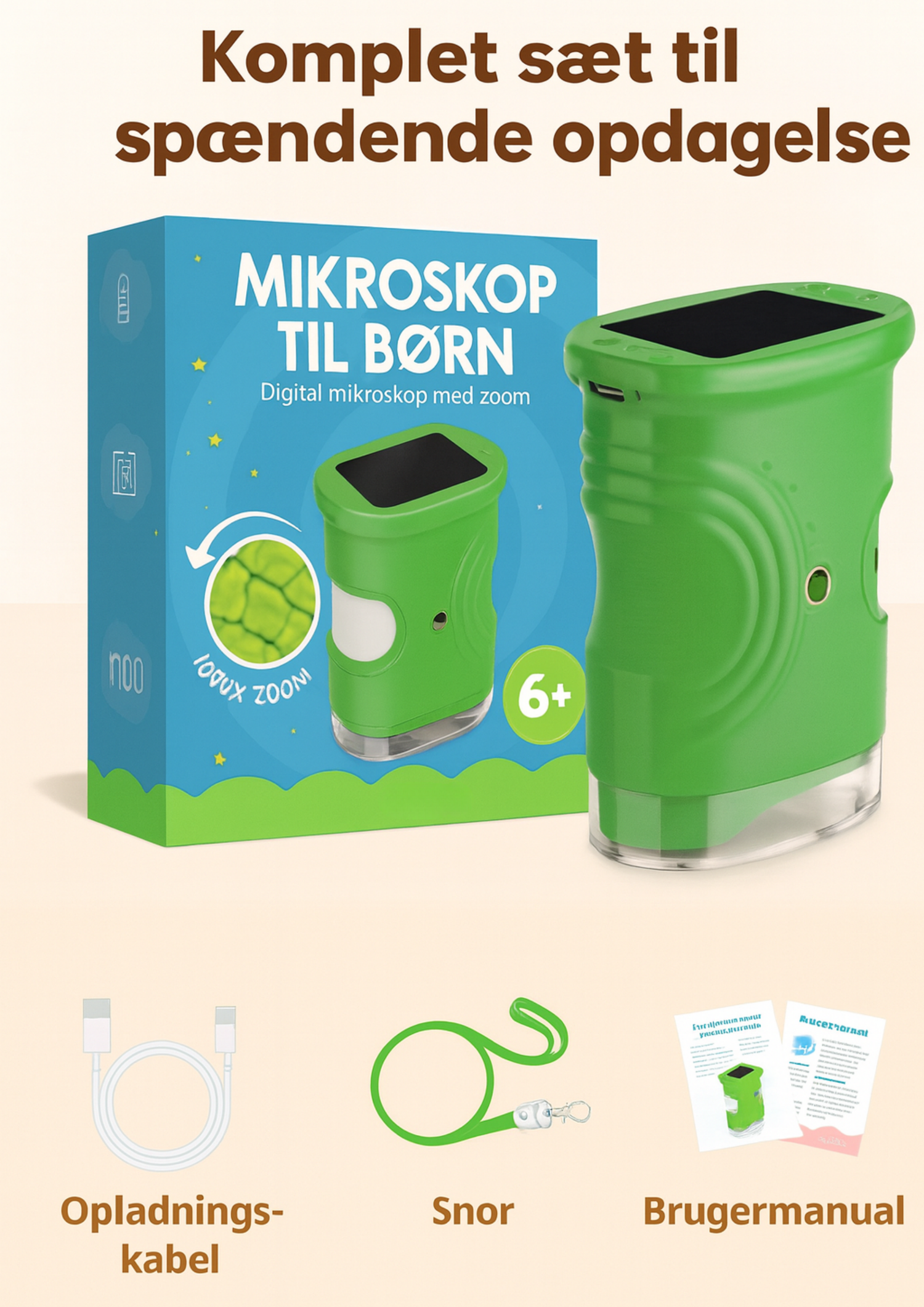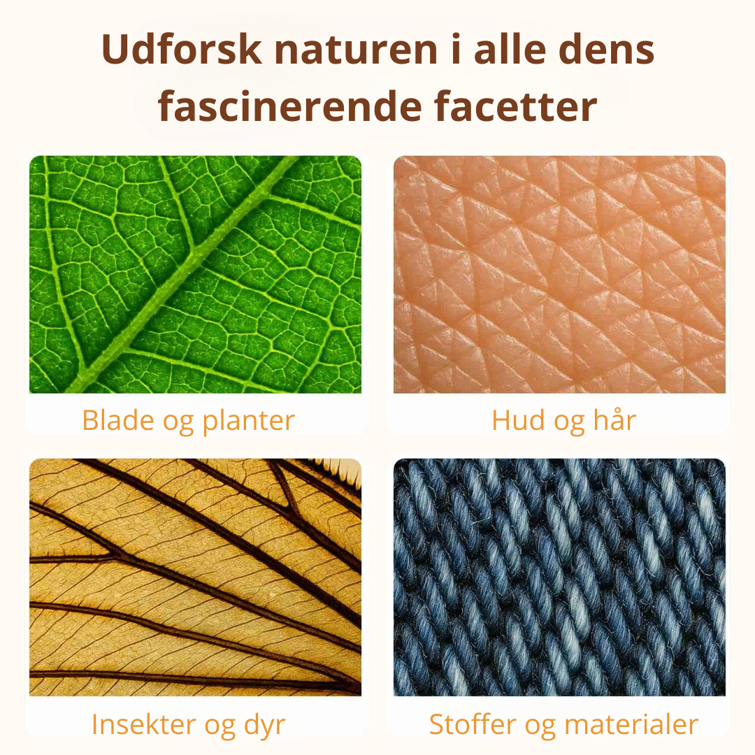 Det digitale mikroskop åbner en verden, som normalt er usynlig for det blotte øje. Cellestrukturer, insektøjne eller bladets fine linjer bliver pludselig tydelige. Med en forstørrelse på 1000x får barnet en ægte wow-effekt. Dit barn bliver fascineret og kan fordybe sig i timevis helt på egen hånd. Det er en gave, der begejstrer allerede fra det allerførste kig gennem mikroskopet.