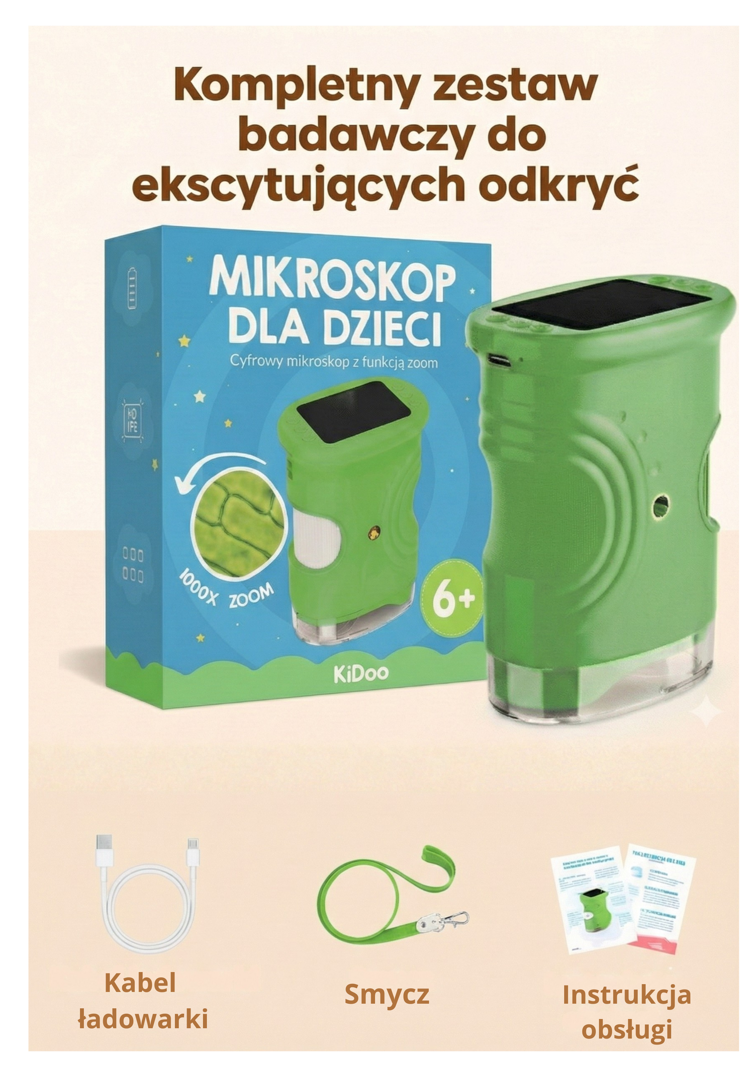 Cyfrowy mikroskop pokazuje Twojemu dziecku świat, który jest niewidoczny gołym okiem. Struktury komórkowe, oczy owadów czy delikatne linie liścia – wszystko nagle staje się wyraźne. 1000-krotne powiększenie zapewnia prawdziwy efekt „wow”. Twoje dziecko jest zafascynowane i potrafi bawić się godzinami samodzielnie. To prezent, który już od pierwszego spojrzenia przez mikroskop wzbudza zachwyt.